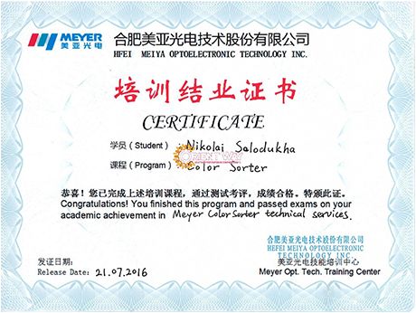 Компания "Meyer" имеет более 50 тысяч партнеров и входит в пятерку крупнейших компаний производителей оборудования для оптической сортировки в мире. Hefei Meyer Optoelectronic Technology Inc. является компанией №1 в Китайской Народной Республике и крупнейшим игроком рынка разработки и производства высококлассного цветосортировочного оборудования и инспекционных рентген-детекторов.